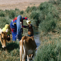 Yemen. Child washed in irrigation channel, north Tihama