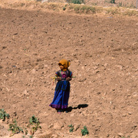 Yemen. Girl with painted yellow face near Bayda