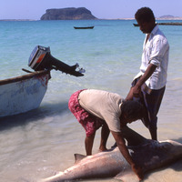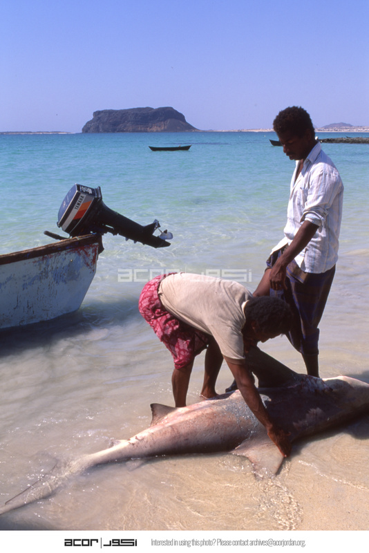 Yemen. Bir Ali fishermen, Husn al-Ghurab behind