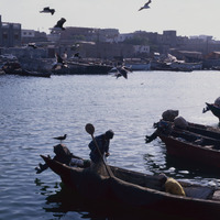 Yemen. Hodeida, fishermen mending nets