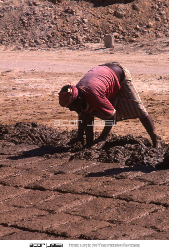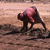 Yemen. Seiyun, making mud bricks