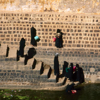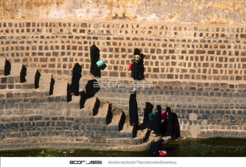 Yemen. Shaharah, women fetching water from cistern