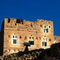 Yemen. Shaharah house in evening light