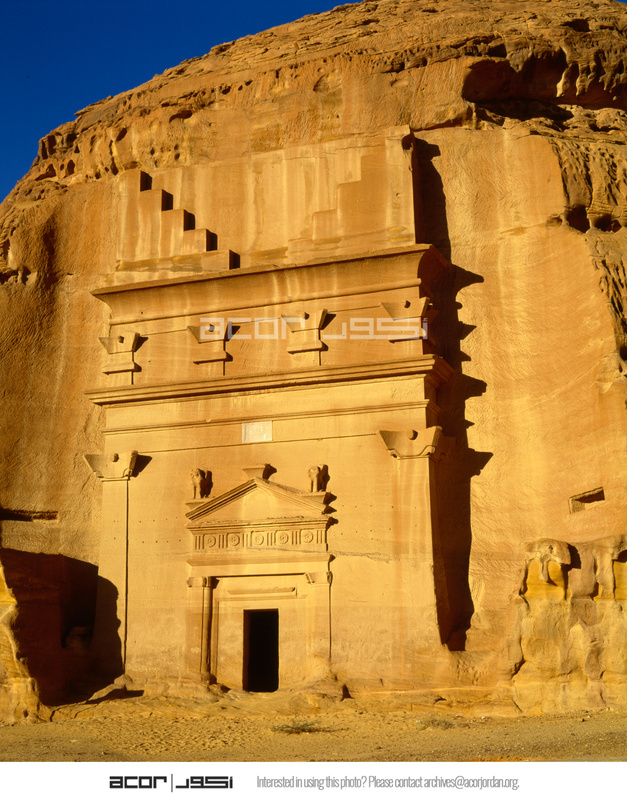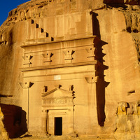 Saudi Arabia. Mada'in Saleh, Khuraimat, large tomb façade with sphinxes, tomb 100