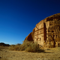 Saudi Arabia. Mada'in Saleh, Khuraimat, large tomb façade with sphinxes, tomb 100