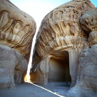 Saudi Arabia. Mada'in Saleh, Jabal Ithlib, Diwan and entrance to Siq