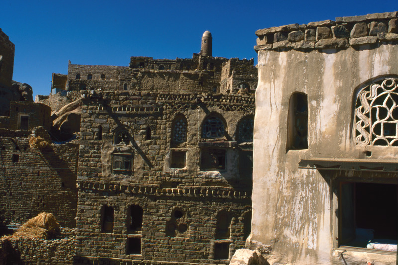 Yemen. Thula, near Sana'a, house façades