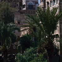 Yemen. Sana'a, houses & gardens in Harat al-Wadi area