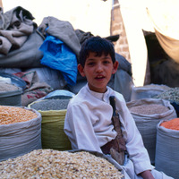Yemen. Sana'a, young merchant in Souq al-Milh