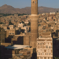 Yemen. Sana'a, minaret of al-Filayhi Mosque