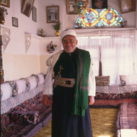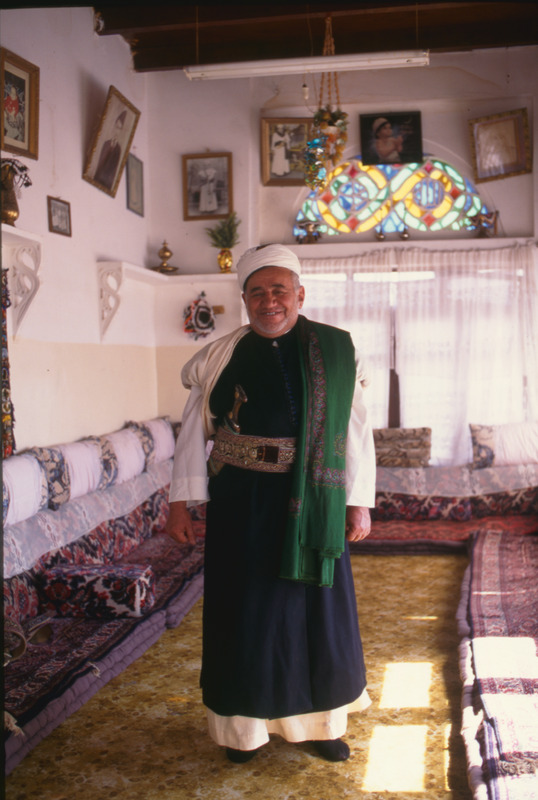 Yemen. Sana'a, Sheikh in sayyid's black robe, sleeves up for street