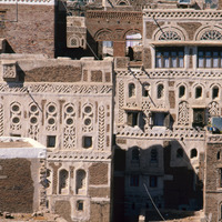 Yemen. Sana'a, house façades, from Samsarat Mansura