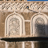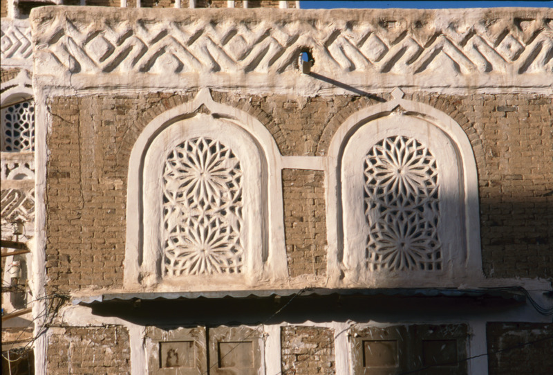 Yemen. Sana'a, detail of house in Old city