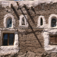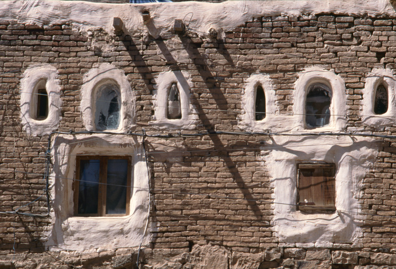 Yemen. Sana'a, detail of house façade