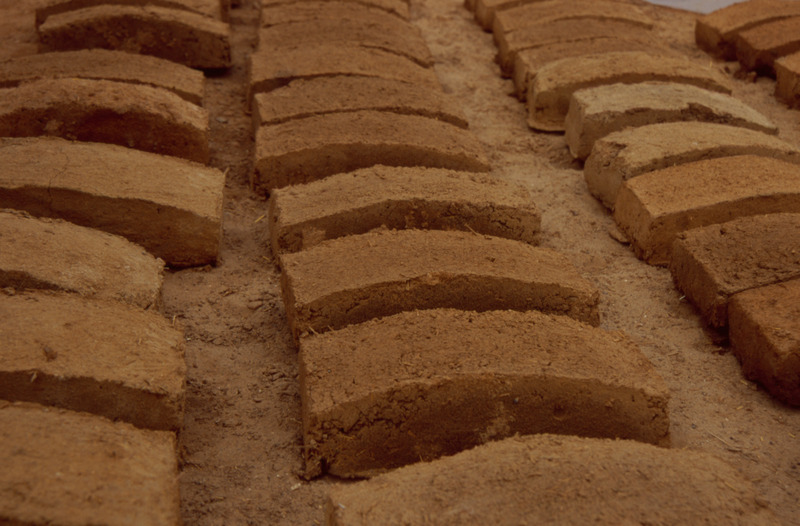 Saudi Arabia. Kaf (Jawf), mud bricks to repair Qasr