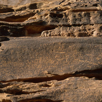 Saudi Arabia. Al-Ula, Jabal Ikmah, rock drawings and inscriptions