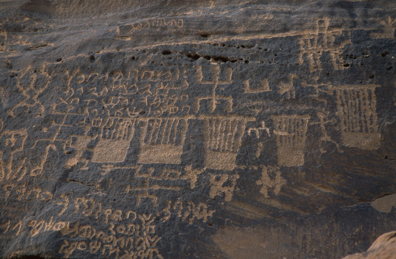 Saudi Arabia. Al-Ula, Jabal Ikmah, rock drawings and inscriptions