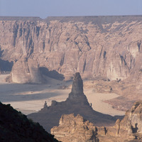 Saudi Arabia. Al-Ula, view north over wadi and mountains from Jabal Harra