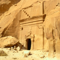 Saudi Arabia. Mada'in Saleh, Qasr al-Bint, tomb on south end