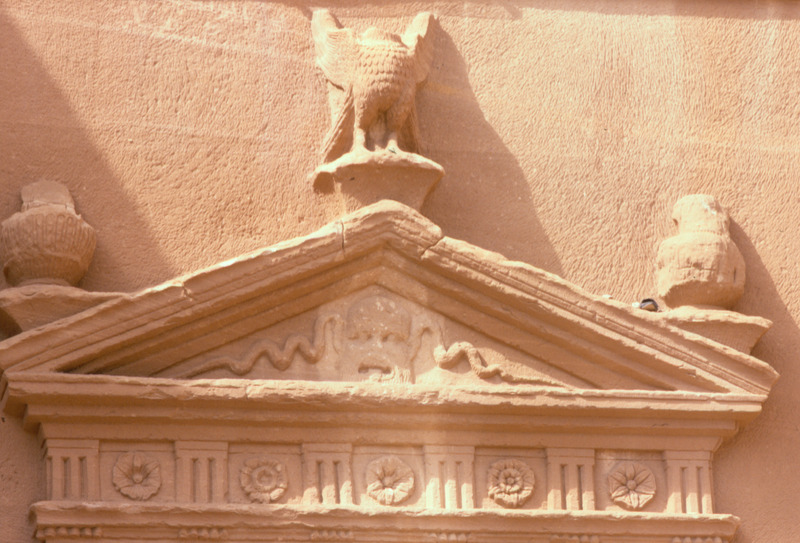 Saudi Arabia. Mada'in Saleh, Qasr al-Bint, detail of tomb on west side Tomb B22/H19