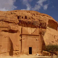 Saudi Arabia. Mada'in Saleh, tomb 39 (1BC/AD) (left) and 38