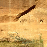 Saudi Arabia. Mada'in Saleh, Jabal Ethlib, water channel and idol niches