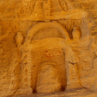 Saudi Arabia. Mada'in Saleh, Jabal Ethlib, idol niche in Siq