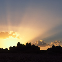 Saudi Arabia. Mada'in Saleh, sun setting behind Jabal Ethlib