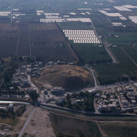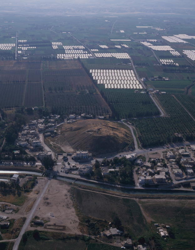 Jordan. Deir Allah, ancient tell in middle of town, view from east
