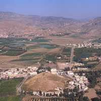Jordan. Deir Allah, ancient tell in middle of town, view from east