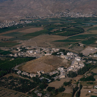 Jordan. Deir Allah, ancient tell in middle of town, view from east