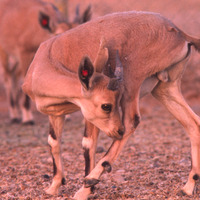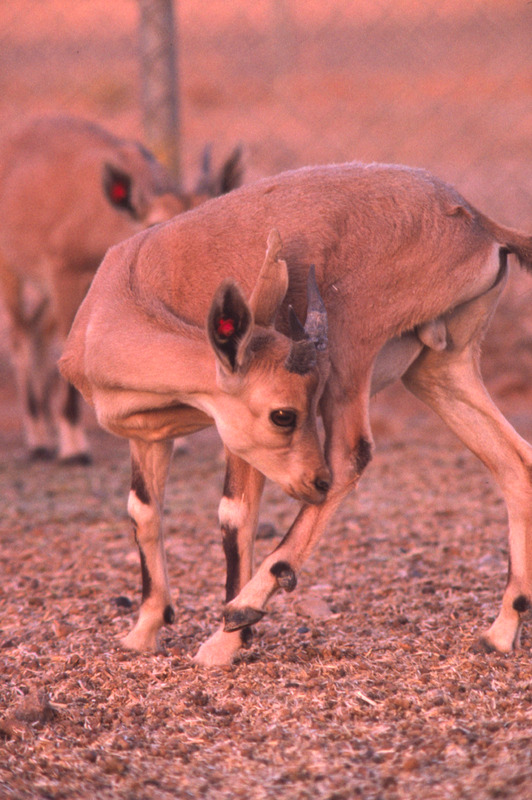 Shaumari Wildlife Reserve, two of 20 Nubian ibex (Capra ibex nubiana) from San Diego July 1989 before release in Wadi Mujib Reserve