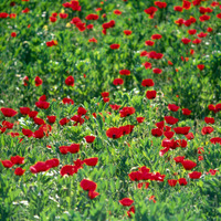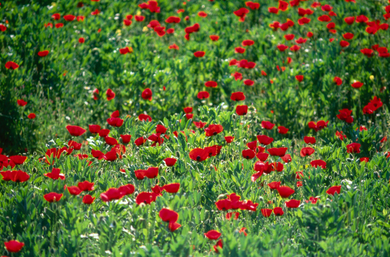 Wadi Seer, poppies (Papaver subpiriforme), and thistles (Cirsium alatum)