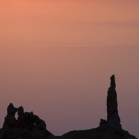 Dead Sea and Lot's wife in afterglow of sunset