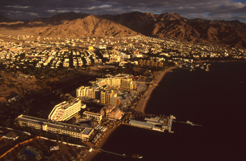 Aqaba, hotels, waterfront and modern town from west