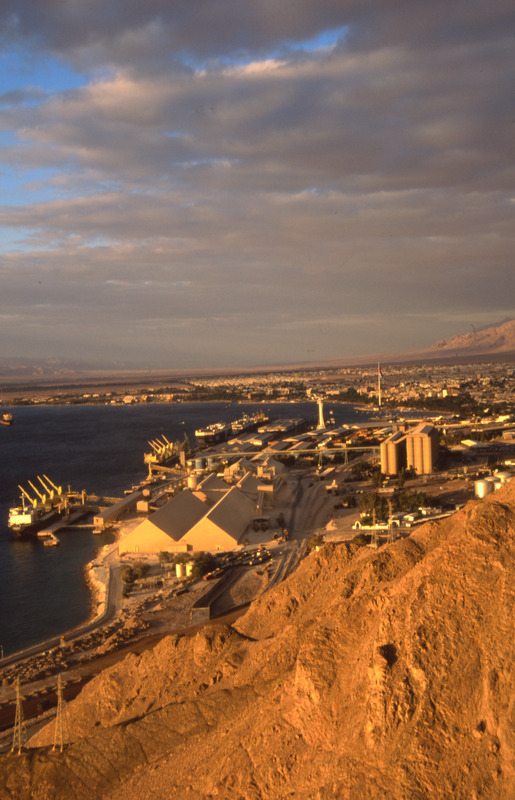 Aqaba port and modern town to Wadi Araba from south east