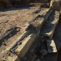 Humeima, Lower church, aqueduct blocks re-used as base for chancel screen