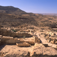 Khirbet edh-Dharih, Nabataean temple seen from houses
