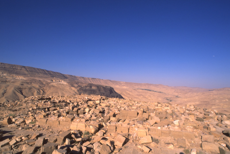Khirbet et-Tannur, view east along Wadi Hasa and volcanic rock