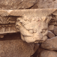 al-Qasr, lion head from Nabataean temple built into barn