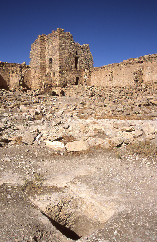 Qasr Bshir, late third century Roman Fort, well in foreground
