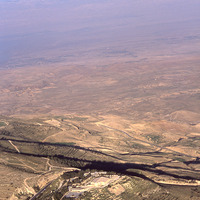 Mount Nebo, Memorial of Moses, from north east, Dead Sea in background