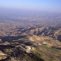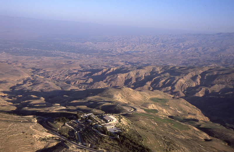 Mount Nebo, Memorial of Moses, from south east, Jordan Valley in background