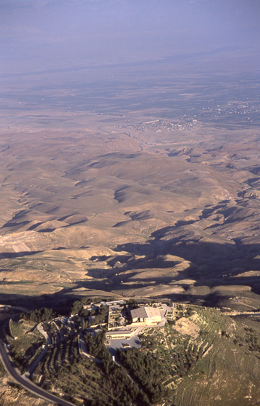 Mount Nebo, Memorial of Moses, from south east, Jordan Valley in background