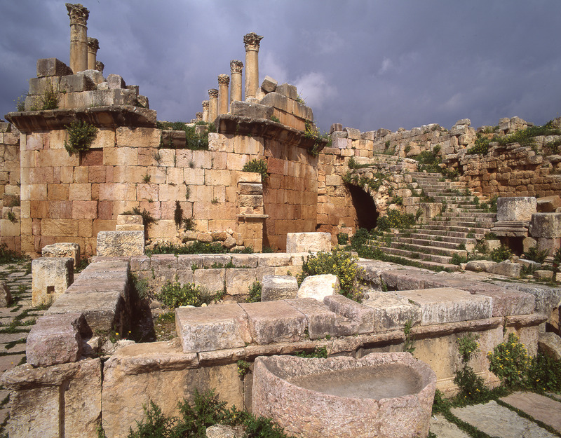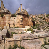 Jordan. Jerash, Fountain Court, St. Theodore's church behind