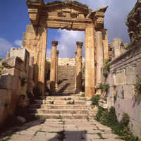 Jordan. Jerash, doorway and stairs from Cardo to Cathedral