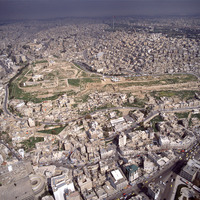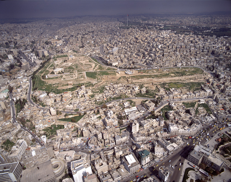 Amman, left - shaped citadel hill (Jabal al-Qala'a) in middle of modern city from south west