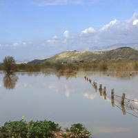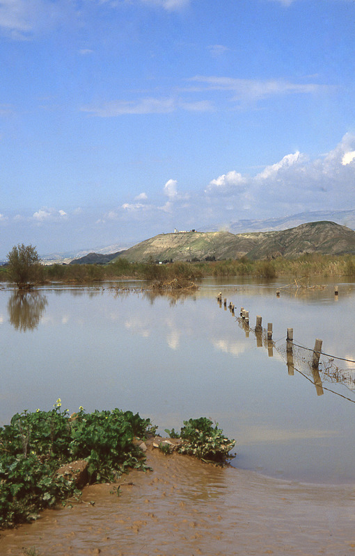 Jordan Valley in spring and floods view to north