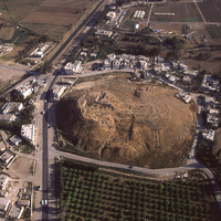 Jordan. Deir Allah, ancient tell in middle of town, view from east