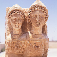Khirbet adh Dhariye, high relief carving of second male heads, Castor and Pollux (Nabataean)